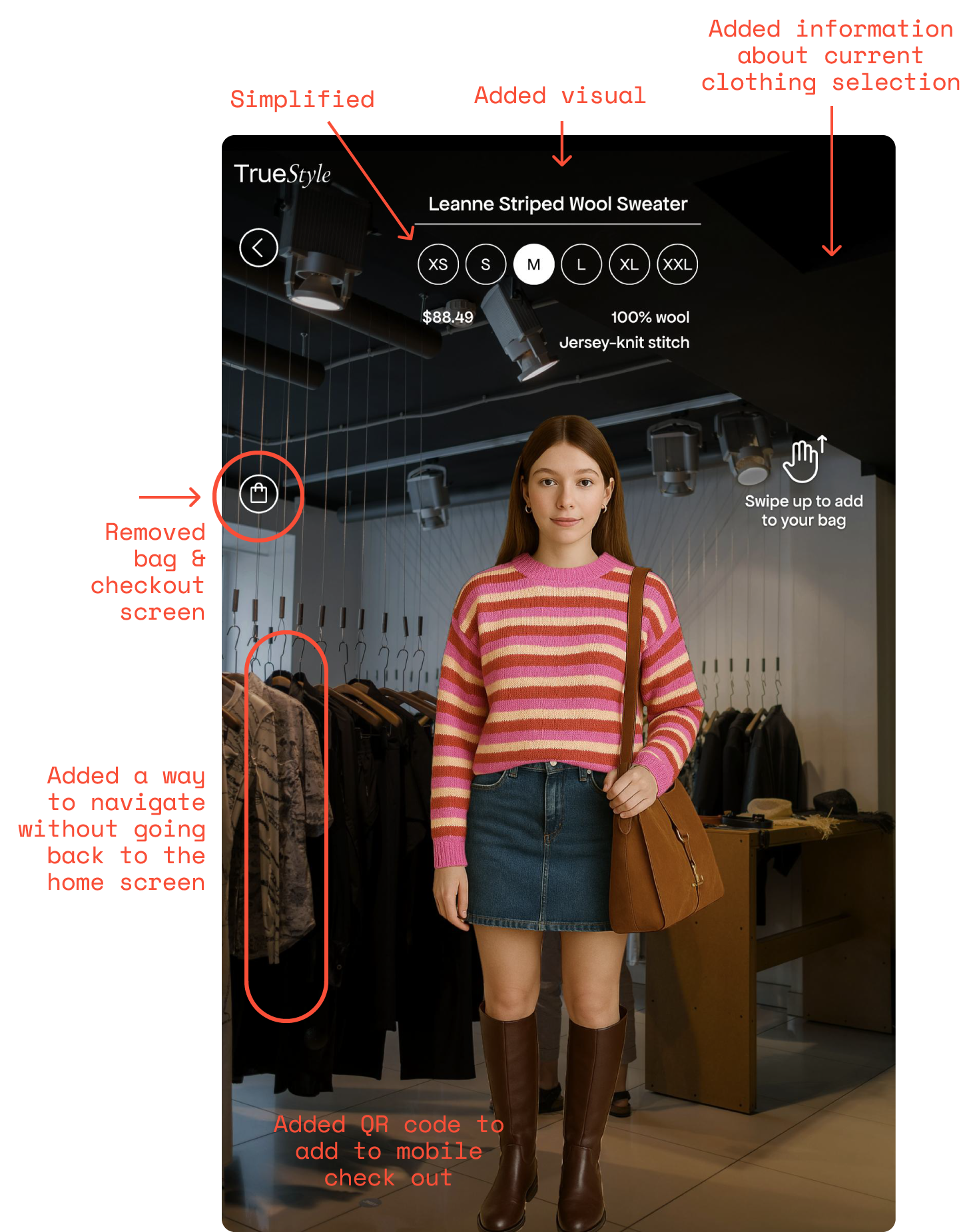 TrueStyle makes it easier for consumers to try on clothing by reducing fitting-room wait times and enabling fast virtual try-ons in-store and at home, allowing shoppers to explore more styles and build complete outfits with confidence before purchasing.